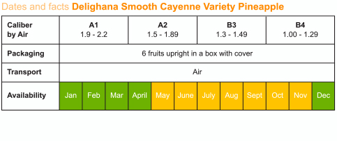 Smooth Cayenne is one of the original African varieties and is rightly known as the “queen of pineapples”. It can easily be recognised by its slightly conical shape and tropical aroma. Its taste has a delicate balance of fruity sweetness and refreshing tartness, making it a favourite among connoisseurs. Due to the exclusivity of the product, we export it by air.