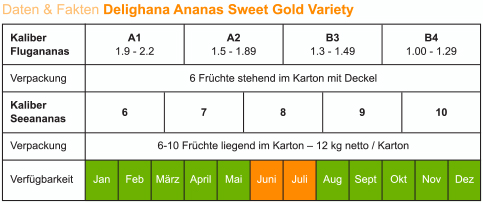 Die Sweet Gold – auch MD2 genannt – wurde in den späten 80er-Jahren des letzten Jahrhunderts in Costa Rica speziell gezüchtet. Sie sollte von homogener Form und Farbe sein, um die entsprechenden Kundenwünsche noch besser zu befriedigen. Das süsse, gelbe Fruchtfleisch und der hohe Gehalt an Vitamin C machten sie für den Konsumenten schnell attraktiv und aufgrund ihrer Haltbarkeit wurde sie für die Produzenten zum Exportfavoriten.